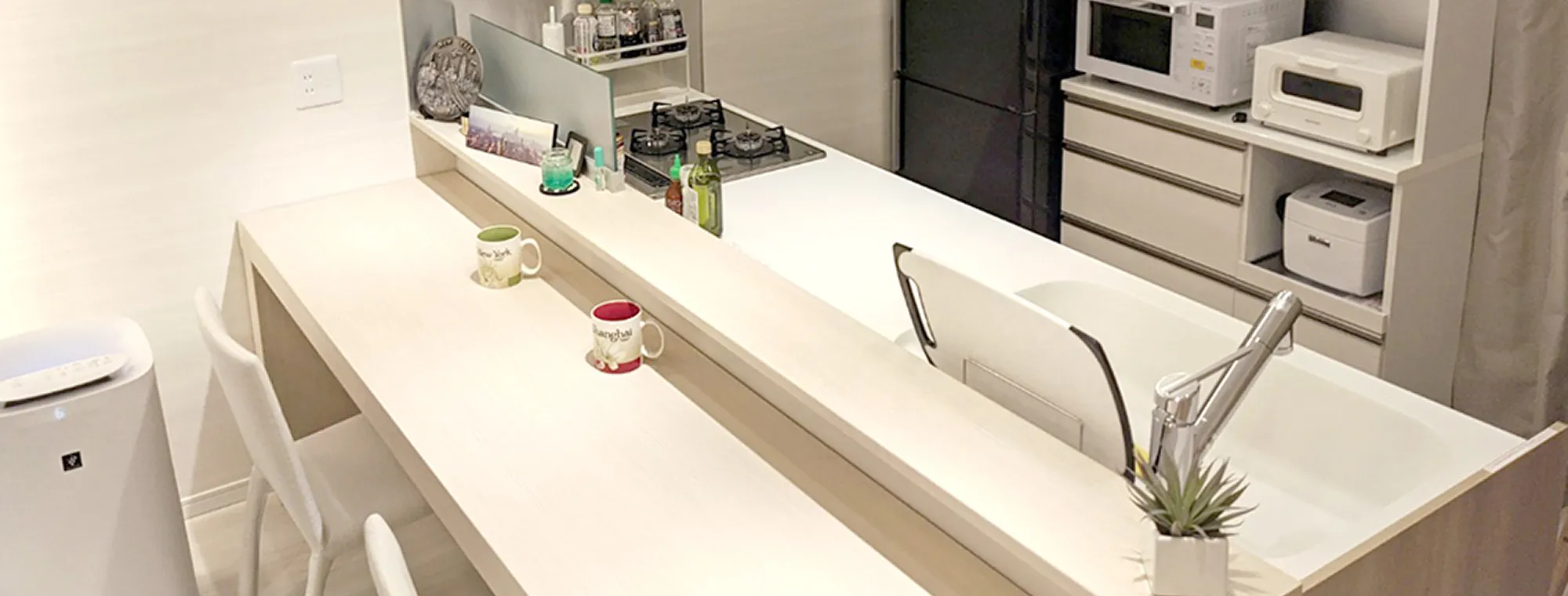 - 前の家と同じ家具を置いても、全然印象が違うんですよ。「あれ、同じ家具だっけ!?」と思うくらい映える。内装が新しくてダウンライトだから、映えるのかもしれないです。