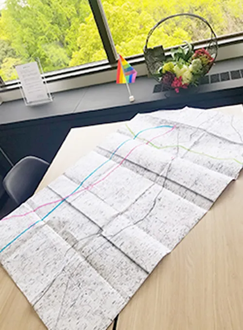 - トーセイ・プリンセススクゥエアーの担当さんが最初に持ってこられた手作りの大きな地図を見て、不動産のプロ魂を感じました(笑)。